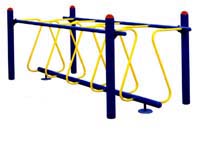 鍛煉方法:兩手握兩側(cè)扶手,腳踏底管,上身保持平衡,扭動(dòng)腰部繞“S”管從一端走到另一端。