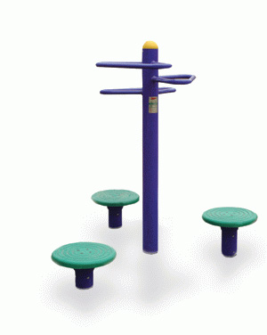 鍛煉方法:手握立柱把手,站在轉體盤上,向左右反復做轉體運動。